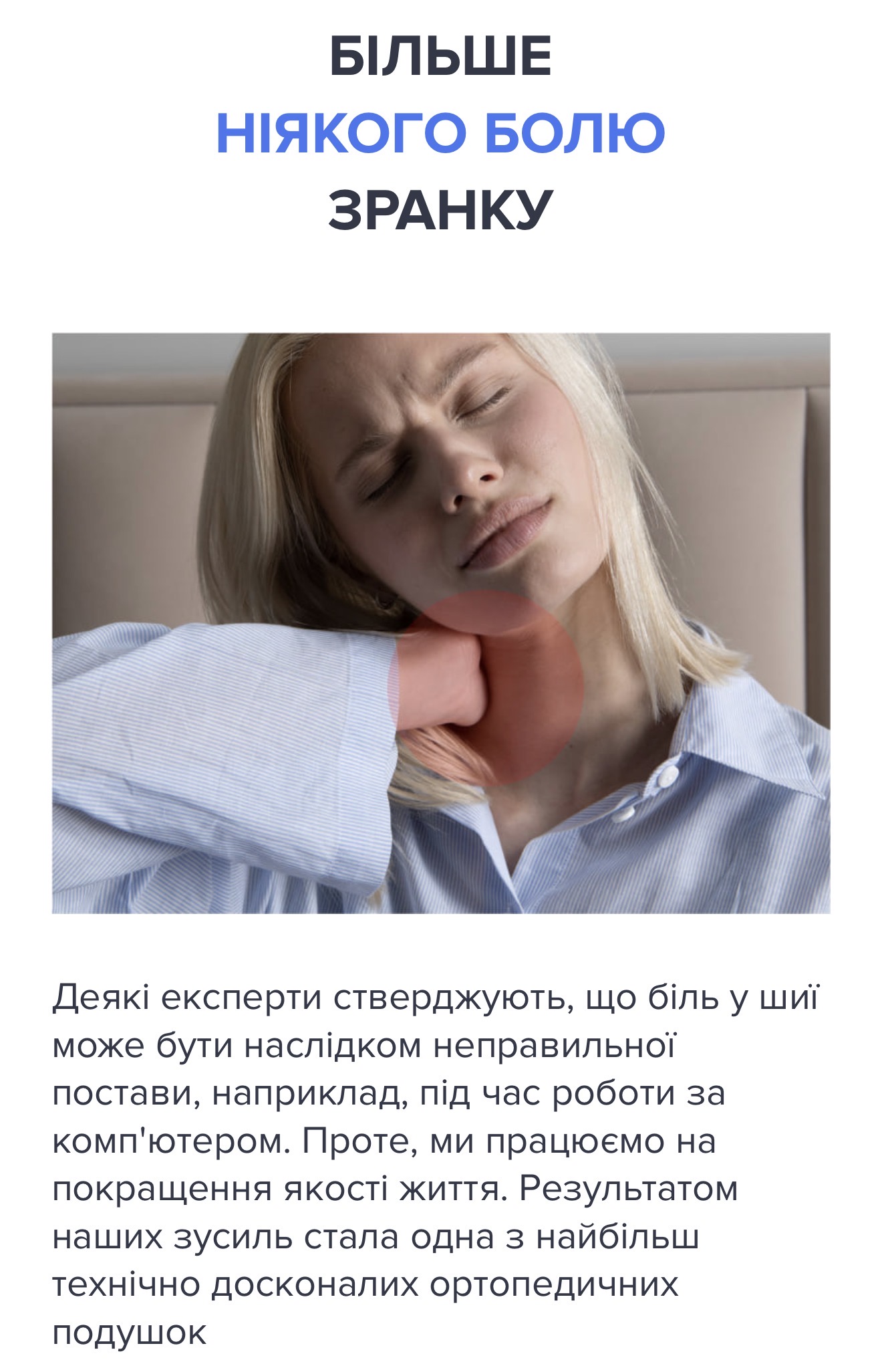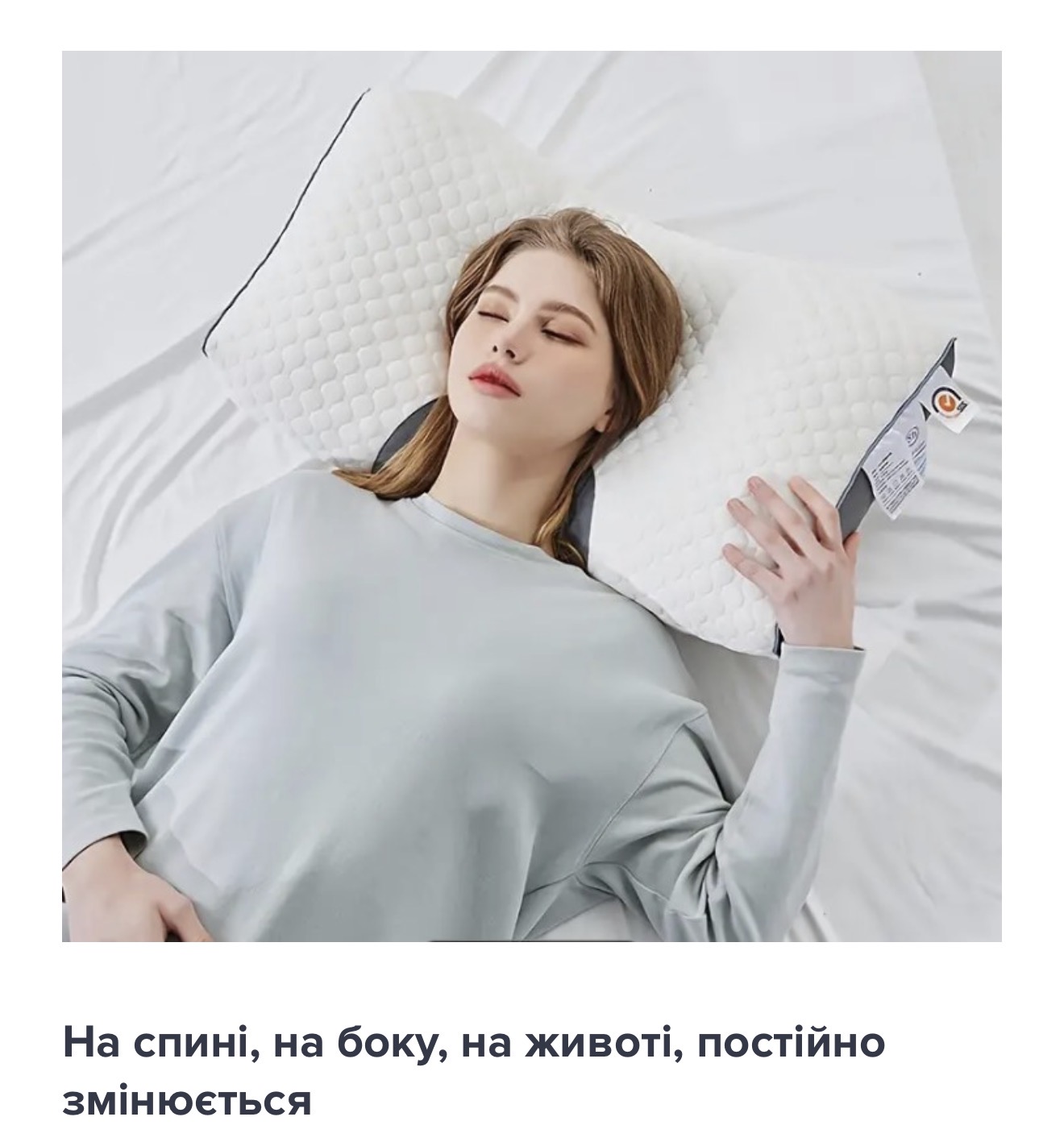 Дуже гарної якості подушка, приємна на дотик, дійсно після користування нею відчула полегшення болю в області шиї. Шви виконані якісно, наповнювач не продавлюється. Рекомендую
